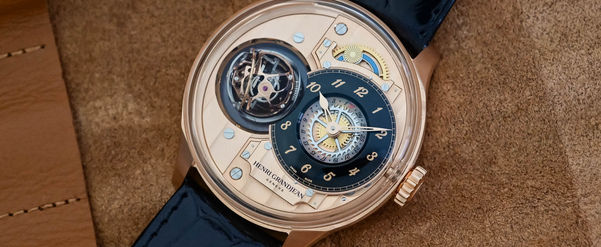 Без видимой механической связи для своего трёхосного загадочного турбийона, часы Henri Grandjean & Cie The Magician полностью оправдывают своё название. Подвешенный между двумя прозрачными дисками, соединяющими его с остальной частью механизма, весь шар словно парит в воздухе. Очень быстрое вращение привлекает взгляд, но и остальная часть циферблата не менее интересна.