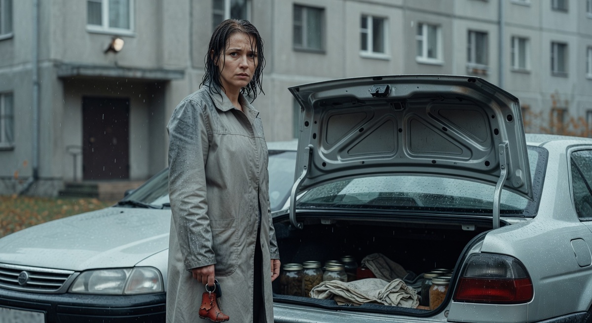 На дачу приехали — я загрузила банки. Двадцать кило огурцов и помидоров. Двенадцать банок, каждая — по полтора литра. Тяжёлые, скользкие, стеклянные. Уложила в багажник, переложила тряпками, чтобы не побились. Обратно — ещё час.