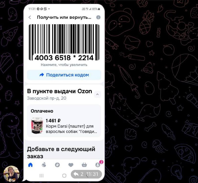 СПАСИБО, ЧТО НЕ ЗАБЫВАЕТЕ! 😍 За последние несколько недель наши хвостики снова почувствовали вашу заботу. Спасибо каждому, кто поучаствовал в акции «БАНОЧКА КОНСЕРВОВ ДЛЯ ДРУГА»! Спасибо за ваши QR-коды, за ваши заказы и за то, что даже на расстоянии продолжаете кормить нас вкусняшками. Без вас мы бы не справились! Для тех, кто ещё не успел ⬇️ Напоминаем, что акция продолжается, и это самый простой способ помочь, даже если вы далеко. Просто закажите баночку на пункт выдачи, а мы всё сделаем сами. Как помочь за 5 минут: 1️⃣ Заказываете консервы для собак (или любой другой корм) на пункт выдачи: 📍 Ozon — г. Москва, Заводской проезд, 20 📍 Wildberries — г. Москва, Заводской проезд, 23 2️⃣ Когда заказ приедет, кидаете QR-код на получение в наш чат. 3️⃣ Мы забираем и везём лакомство в приют! Подойдут любые консервы, но хвостики особенно любят: — DARSI — ДЕРЕВЕНСКИЕ ЛАКОМСТВА — BOWL WOW — HAPPY DOG — MONGE Каждая открытая банка — это маленькое доказательство того, что мир не без