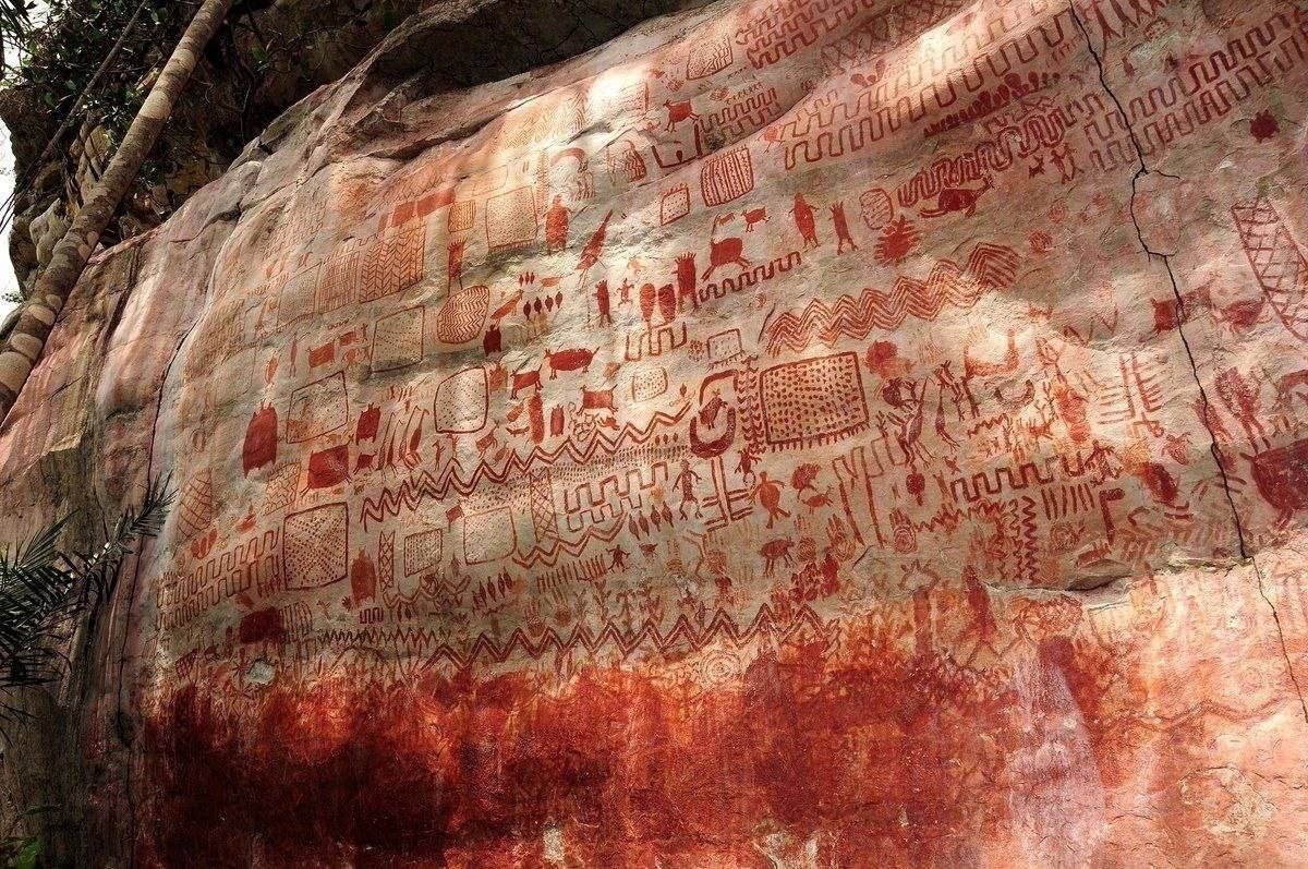 Однако новые находки меняют это представление: в колумбийской части Амазонии учёные нашли 13- километровый утёс, исписанный десятками тысяч древних наскальных росписей времен Ледникового периода. Датировали их легко, здесь оказались изображены вымершие виды животных - мамонт, гигантский ленивец и мастодонт. Возраст изображений археологи оценили примерно на 12’500 лет. Рисунки в основном выполнены красной охрой, и многие из них расположены настолько высоко на скалах, что исследователи могли увидеть их только с помощью дронов, оснащенных камерами высокого разрешения. Леса оказались не такими уж и не тронутыми, человечество основательно потопталось на этой земле в незапамятные времена. Хотелось бы знать, как можно все это время не замечать 13 километров расписной скалы и как объяснить, что часть рисунков находится там, куда сейчас могут добраться только дроны? Терра инкогнита | Неизвестная земля