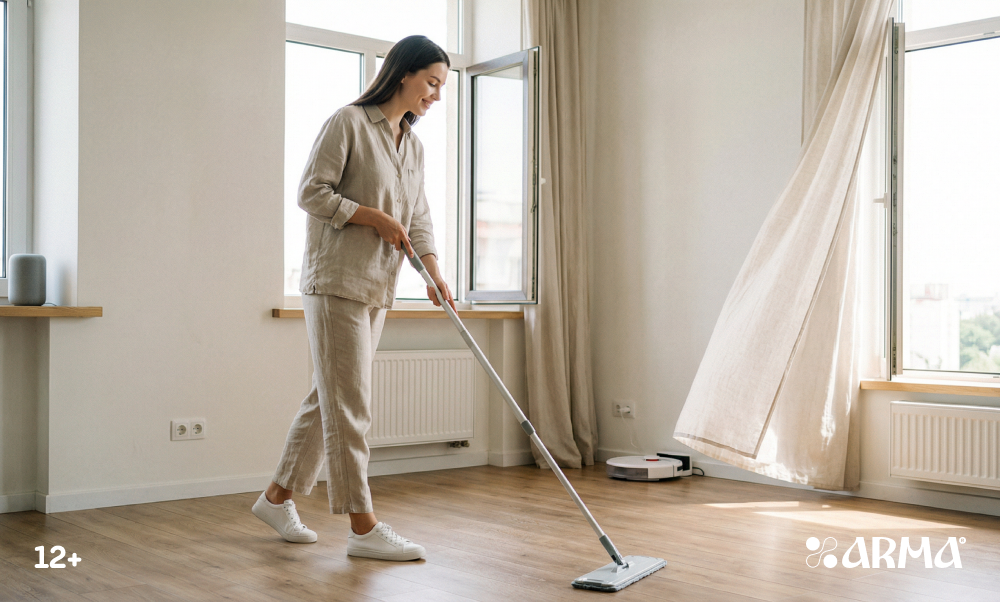 Многие воспринимают уборку как простую задачу, не требующее особой подготовки: достаточно взять тряпку и пылесос, и можно начинать. Однако привычные домашние дела могут привести к травмам – от растяжений мышц спины до серьезных проблем с суставами. Чтобы поддержание чистоты в доме не закончилось визитом к врачу, следуйте нескольким простым правилам. Начинать уборку сразу после сна или длительного сидения – не лучшее решение. В это время мышцы могут быть расслаблены, и любое резкое движение, например, при попытке передвинуть тяжелый диван, может привести к растяжению. Потратьте 3-5 минут на разминку: выполните несколько наклонов и поворотов головы, а также покрутите кистями рук и стопами. Это поможет активизировать кровообращение и подготовить ваше тело к предстоящим нагрузкам. При уборке часто возникает необходимость поднимать и перемещать тяжелые предметы, что создает нагрузку на поясницу. Чтобы избежать травм, запомните главное правило: поднимайте тяжелые предметы, используя ноги, а