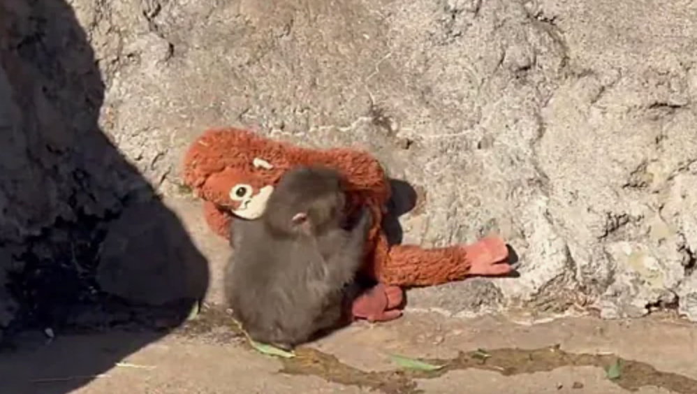 Брошенный матерью макака Панти наконец принят в стаю — игрушка больше не единственный друг.