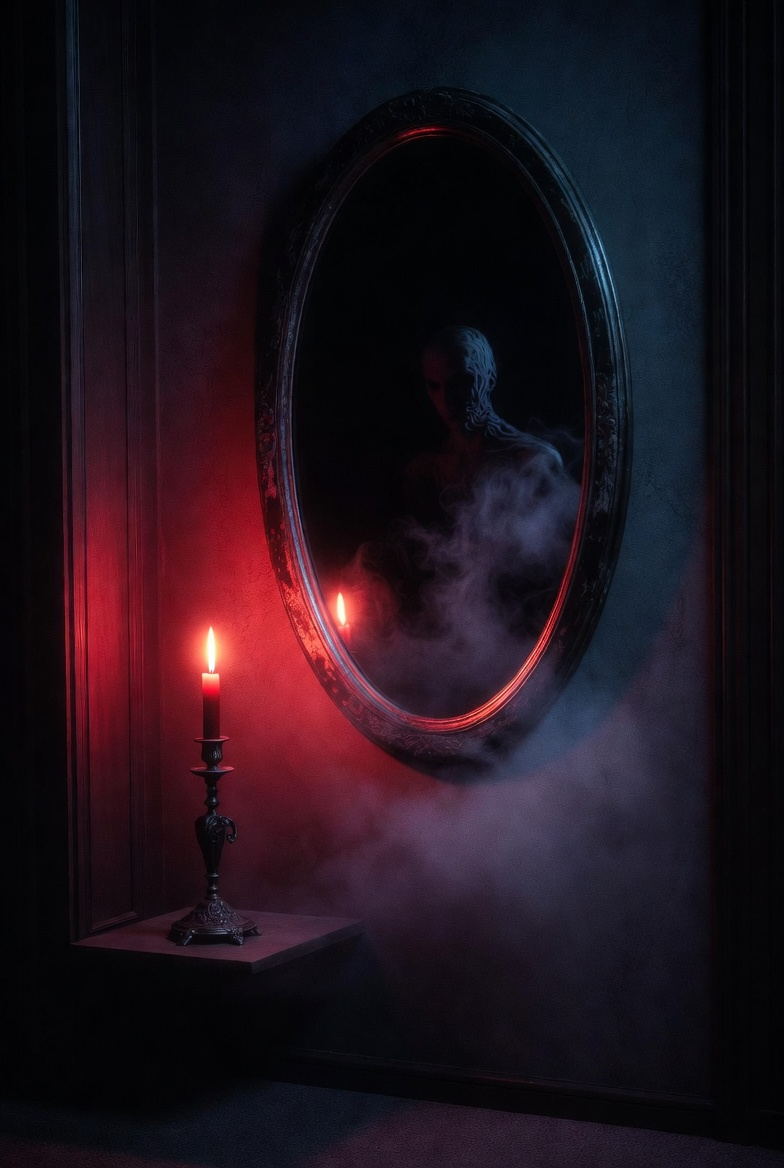 Это было три года назад. Я тогда снимал старую квартиру в центре, где зеркало в коридоре висело ещё с советских времён — огромное, в тяжёлой раме. Однажды ночью, возвращаясь с работы около двух часов, я прошёл мимо него и замер. В отражении я увидел не себя. Там стоял кто-то другой. Тот же рост, та же одежда, но лицо… чужое. Бледное, с пустыми глазами и лёгкой улыбкой. Оно смотрело прямо на меня. Я моргнул — и всё исчезло. Отражение снова стало моим. С тех пор я знаю: после полуночи зеркала могут показывать не тебя. И если ты увидишь чужое лицо — лучше не задерживаться. Сегодня расскажу старую легенду, которую мне передали шептухи, и что случилось со мной потом. Если ты когда-нибудь замечал в зеркале что-то странное после 00:00 — читай внимательно. По поверьям, полночь — это граница. Духи, тени, сущности из «междумирья» становятся ближе к нашему миру. Зеркало — не просто стекло. Это дверь. Днём она закрыта. Ночью, особенно после 00:00, может приоткрыться. Шептухи говорят: в зеркале от