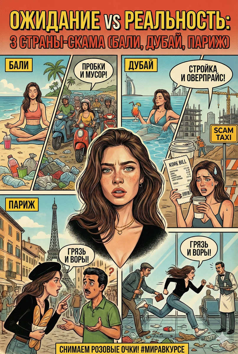💔 Ожидание vs Реальность: 3 страны, которые в рилсах выглядят как рай, а на деле - сплошной скам и оверпрайс