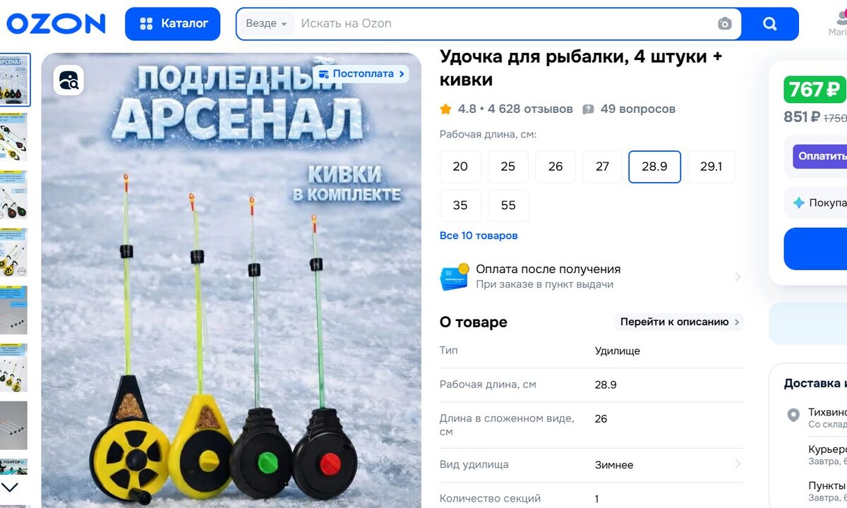 Интересно, что здесь имеем редкий случай, когда экономика непрофильной торговли лучше, чем специализированной. Хотя обычно я не рекомендую покупать разного рода "рыболовные готовые наборы", но, что касается именно ситуации с удочками для ловли на мормышку , то на Озоне (например) можно приобрести вот такой набор из 4 удочек
