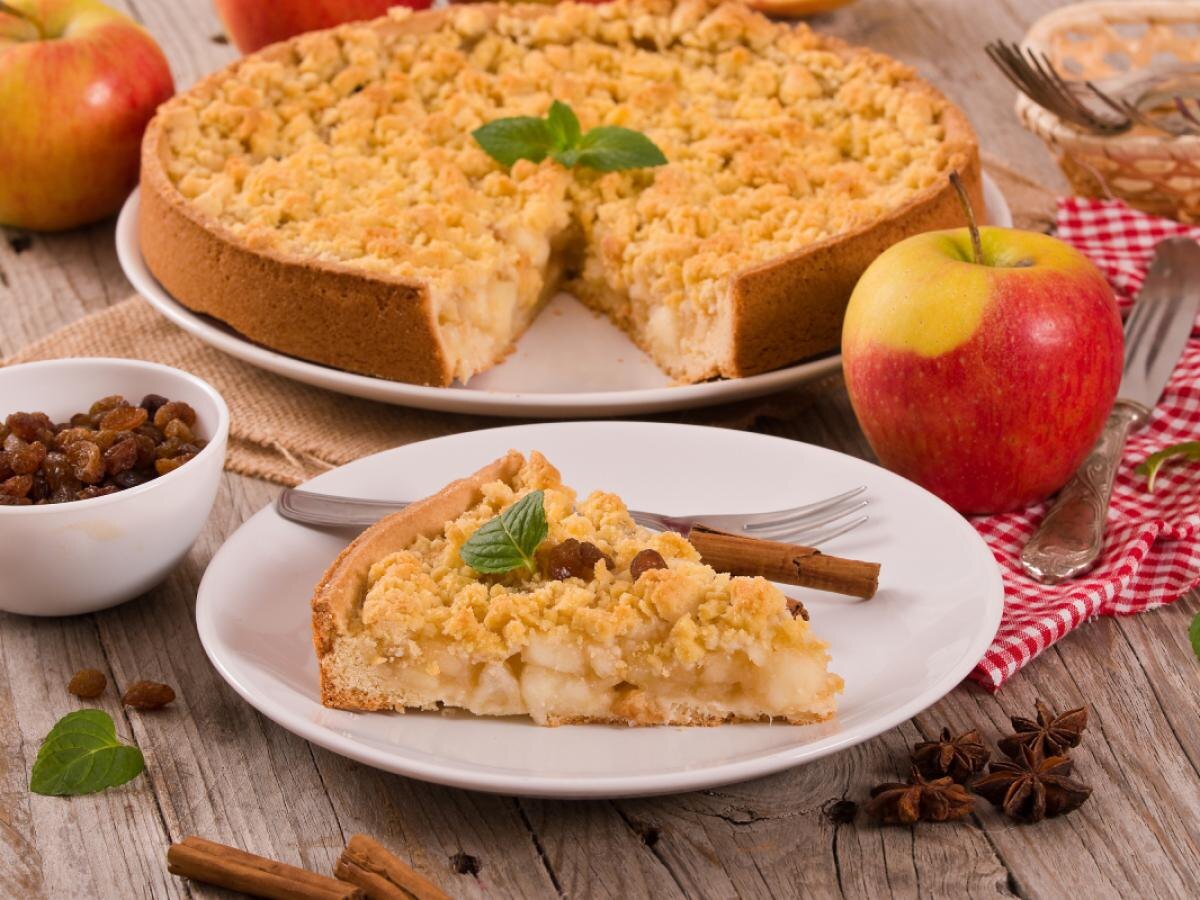 8. Постная шарлотка с яблоками на крепком чае