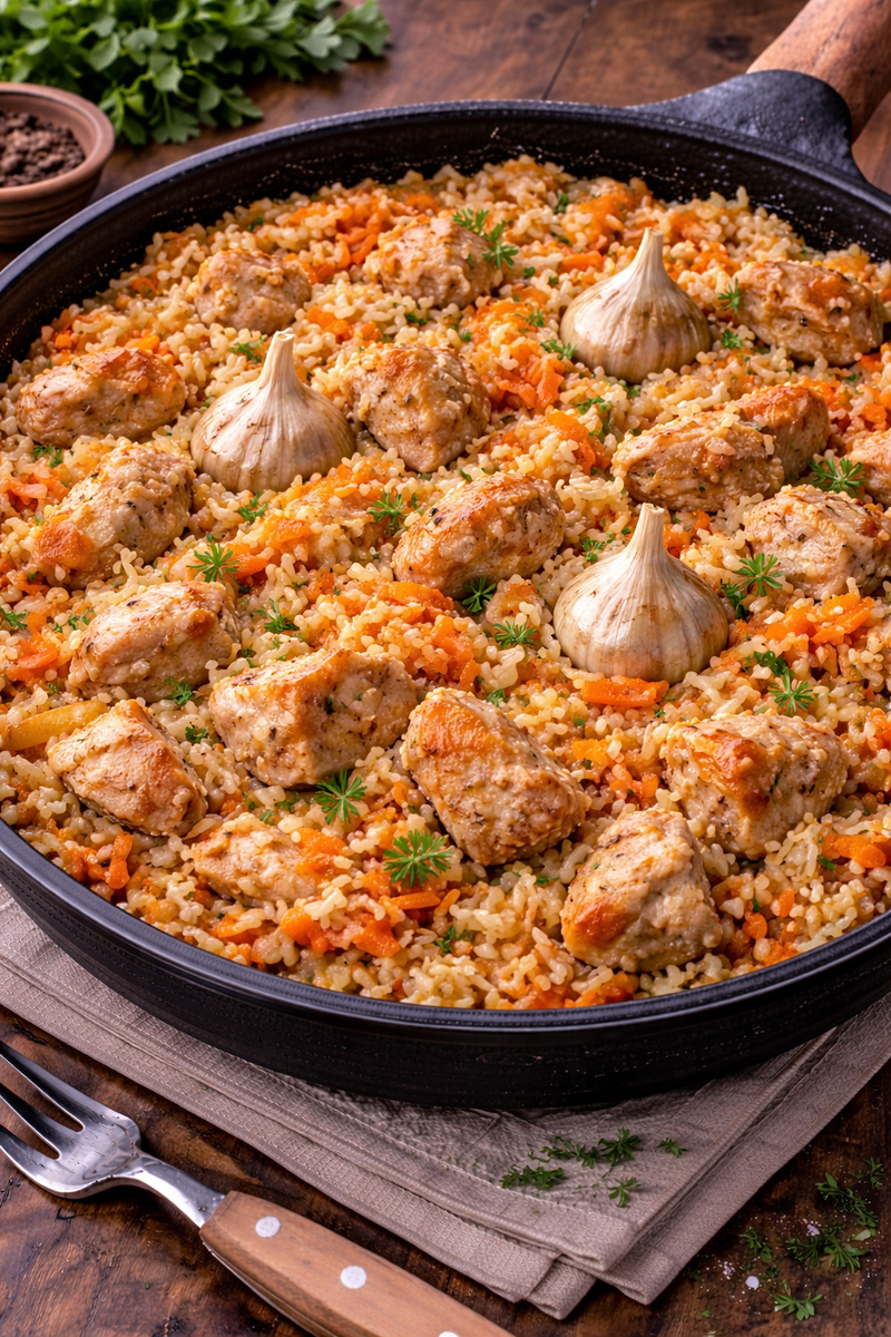 Иногда хочется плова. Настоящего, ароматного, с рассыпчатым рисом и мягким мясом. Но доставать казан, долго обжаривать, следить за слоями — честно, не всегда есть силы. Я люблю такие блюда, но в упрощённой версии. Чтобы вкус был, а сложностей — минимум. Этот вариант — для обычной сковороды. Всё просто, понятно и из доступных продуктов. На 3–4 порции хватает спокойно. Что понадобится: Куриное филе или бёдра без кости — 600 г (350–550 рублей)