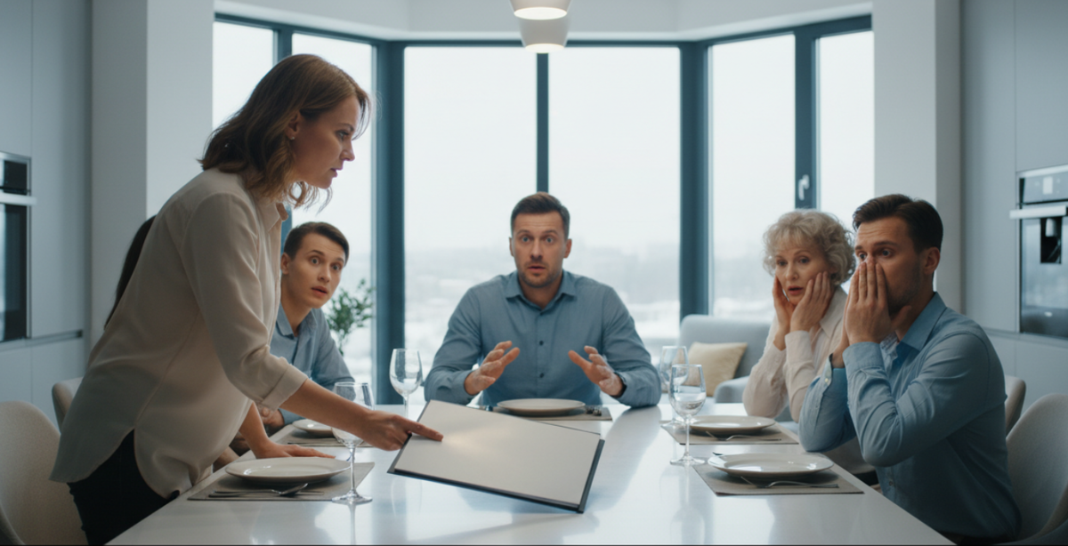 Гости замерли. Кто-то перестал жевать. Пауза затянулась и стала неуютной.
