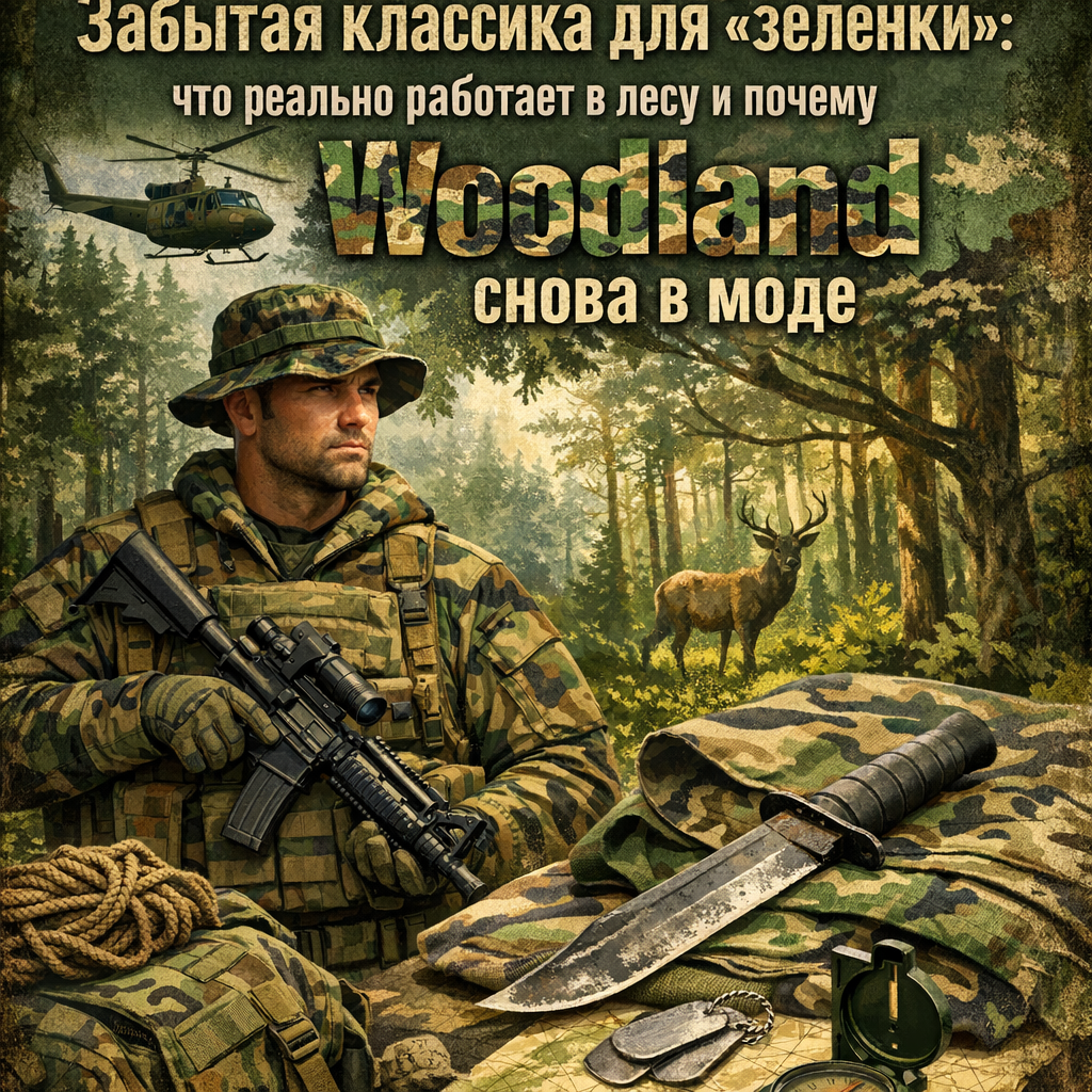 Но в начале 2026 года на крупнейшей оружейной выставке SHOT Show произошел разрыв шаблонов. Бренд UF PRO (один из мировых лидеров по производству тактической одежды премиум-класса для спецподразделений) официально объявил о запуске своих топовых линеек в старой доброй расцветке Woodland / M81 (классический лесной камуфляж с крупными контрастными пятнами). Почему гиганты индустрии внезапно делают ставку на рисунок из 80-х годов? Разбираем мифы о современной маскировке и физику цвета. Это главное заблуждение новичков. Мультикам создавался как универсальный (переходный) камуфляж для гор, степей и выжженных солнцем равнин Афганистана.