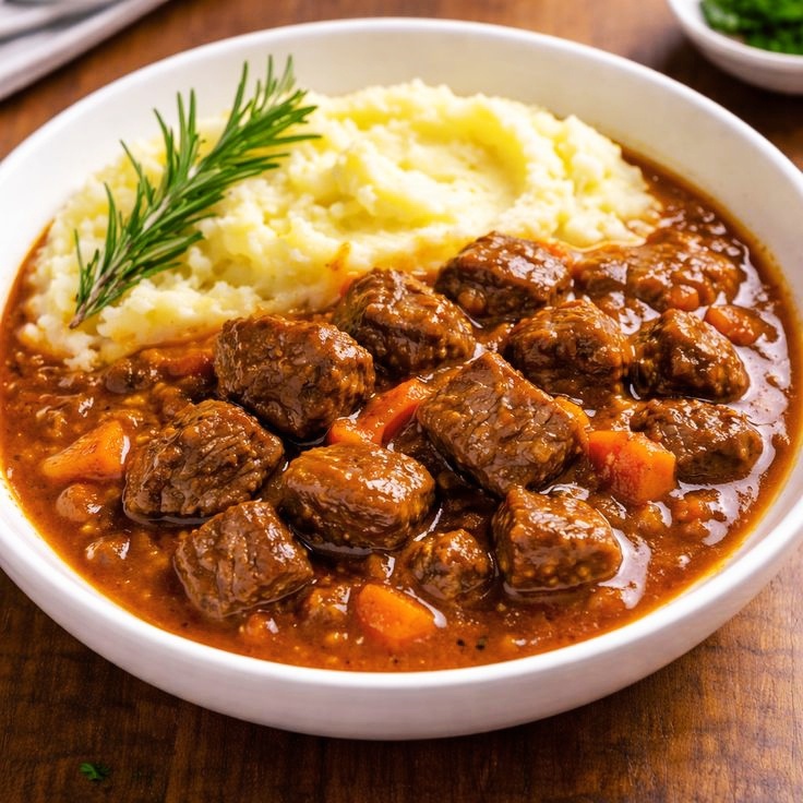 В кастрюле, сотейнике или в ковше с толстым дном хорошо разогреть масло. Обжарить мясо, нарезанное небольшими кусочками, кубиками или соломкой. Мясо схватится корочкой, но внутри останется сочным.