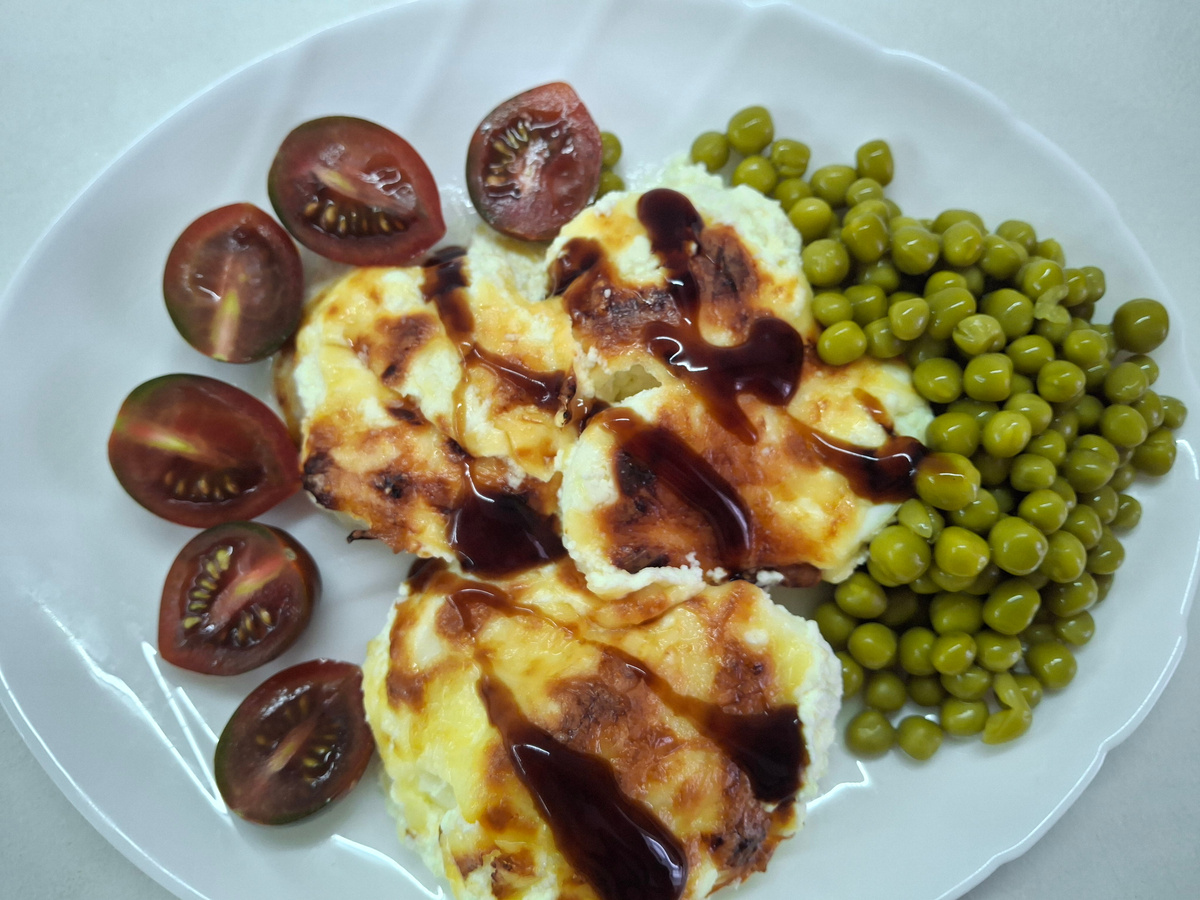 Завтрак! Яйца с хрустящей сырно-сметанной шапочкой в духовке. Состав: