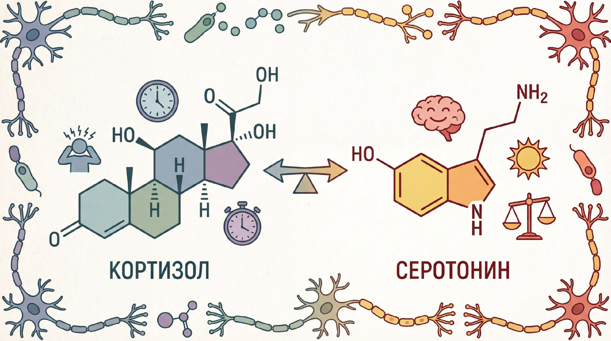 Знаете, как часто мы слышим: «Успокойся», «Не нервничай»? 🤨 А как это сделать, когда жизнь подкидывает сюрпризы один за другим? 🌪️ Недавно я погрузилась в удивительный мир биохимии нашего организма и поняла: всё дело в гормонах! 🧪 Особенно в двух главных героях — кортизоле и серотонине. 🔬 Представьте себе наш организм как сложную химическую лабораторию. 🏥 Когда мы нервничаем, лаборатория начинает производить кортизол — гормон стресса. 📈 Он запускает реакцию «бей или беги», повышает давление, учащает пульс… И вроде бы всё правильно — природа заботится о нашей безопасности. Но когда стресс становится хроническим, эта лаборатория начинает работать против нас! 🚫 А теперь самое интересное — как здесь появляется медитация! 🧘♀️ Это словно волшебный пульт управления нашей химической лабораторией! ✨ 🎯 Во время практики происходит настоящая революция: Знаете, что поразительно? 😲 Эти изменения не просто временные. При регулярной практике наш мозг буквально перепрограммируется! 🧠 Он на