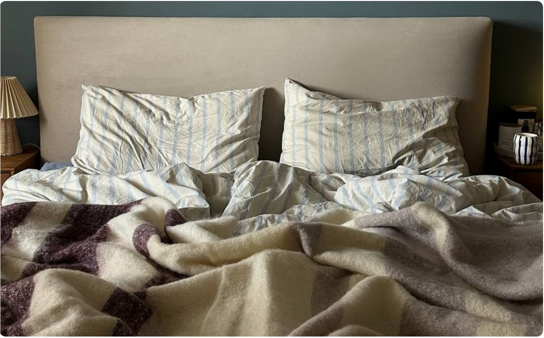 Конец февраля и март — это время самой капризной погоды: морозные ночи сменяются оттепелями, а весенняя сырость проникает в дома. Межсезонье требует особого внимания к микроклимату спальни — пробуем разобраться, как создать комфортные условия для сна, когда погода непредсказуема, а отопление работает по своему графику. На фото: мохеровый плед Over Horizon Одеяло — это основа ночного комфорта, а его выбор зависит от личных предпочтений, погоды в вашем регионе и домашнего микроклимата. Свойства одеяла во многом зависят от наполнителя: • Пуховое — самое легкое и теплое, отлично подойдет, для тех, кто живет в северных широтах или предпочитает спать с открытым окном. • Шерстяное — хорошо регулирует температуру и подходит как для холодных, так и для более теплых ночей. Шерсть тяжелее пуха, но многим нравится ощущение мягкого веса — меньше тревожность, легче засыпать. • Бамбуковое или эвкалиптовое — прохладное, подойдет для тех, кому всегда жарко. Хороший выбор для влажных помещений — эти мат