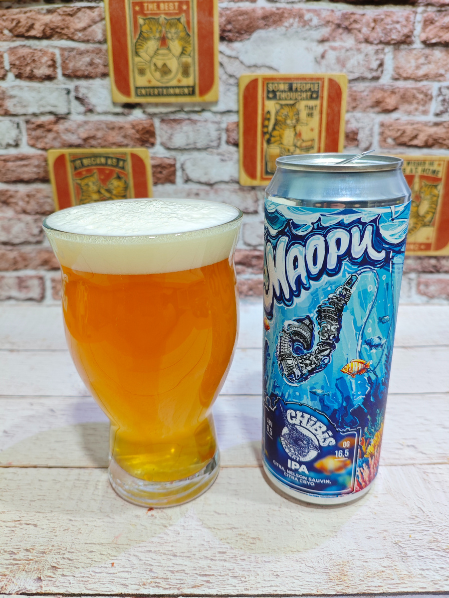 IPA на хмеле Citra, Nelson Sauvin и Citra Cryo от московской пивоварни CHIBIS (ООО "Пивоварня Чибис"). На сайте пивоварни описания продукции нет. На UNTAPPD ничего интересного. ********************************************************************************** Плотность: 16.5%. Состав: вода подготовленная (исправленная), солод пивоваренный ячменный, хмель, дрожжи пивные. Срок годности: 365 суток при температуре от 0 до +6℃. С даты розлива моей банки прошло 1.5 месяца. ********************************************************************************** Пены не много, но стойкость неплохая. В аромате доминируют цитрусы; на фоне угадывается нечто тропическое. Карбонизация умеренная. Вкус цитрусовый с сильным привкусом винограда и крыжовника. Вкус довольно сильный, но при этом мягкий. Едва сладковатый с выраженным горьковатым привкусом, который субъективно ощущается на уровне 30-40 IBU. На послевкусии всё то же самое; из цитрусовых сильнее всего проявляет себя грейпфрут. Крепость не чувствуе