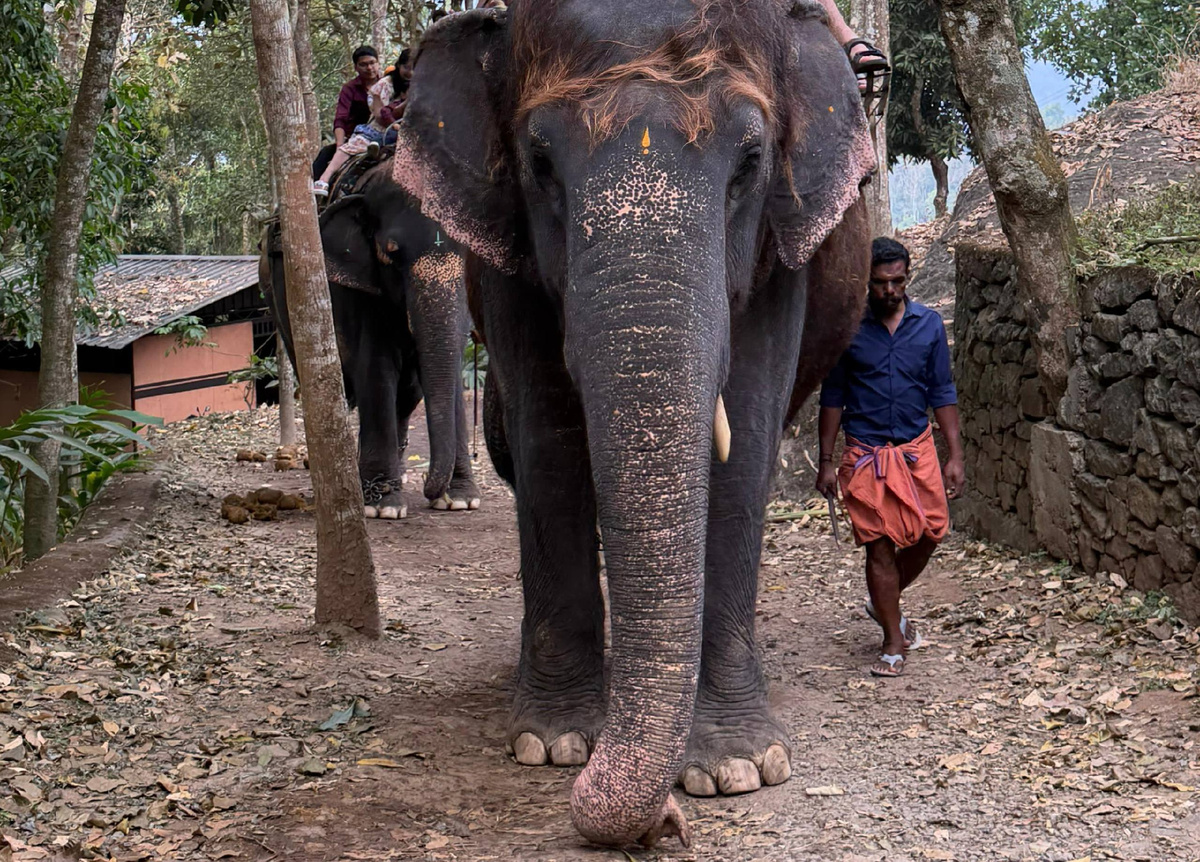 Слоники в Керале похожи на мамонтов – волосатая голова, на спине тоже шерсть. Как и все индийские слоны, они меньше африканских. У них две шишки на лбу, покатая спина с горбинкой и более спокойный нрав. На хоботе всего один «пальчик», тогда как у собрата из Африки - два. Когда мы приехали в парк, оказалось, что большинство слонов разобрали по фестивалям. Это выгоднее, чем катать туристов. Аренда одного животного на день стоит 100 тысяч рупий или 85 тысяч рублей, а если он ещё силён и хорош собой – все 200! Слон в Индии - священное животное, поэтому их убирают цветами, разукрашивают и выставляют рядом с индуистскими храмами. И не только. Слонов можно увидеть даже возле католичесих церквей, которые в Тхеккади встречаются на каждом шагу. Чтобы катать туристов, на слонов укладывают коврик, матрац и закрепляют скобу, чтобы держаться. Интересно, какие ощущения у людей, у которых с растяжкой нелады – потянуться приходится неплохо… Чтобы слоны шли медленно и не пустились галопом, им надевают