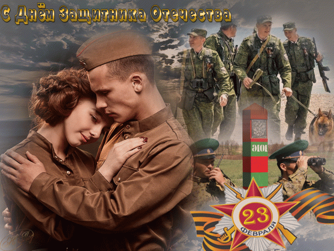 Тишиной земля укрыта,Каждый житель мирно спит,На замок страна закрыта,Пограничник там стоит.С Днём защитника Отчизны,Наш хранитель дорогой!Силы, веры, счастья в жизни,Мы гордимся все тобой!