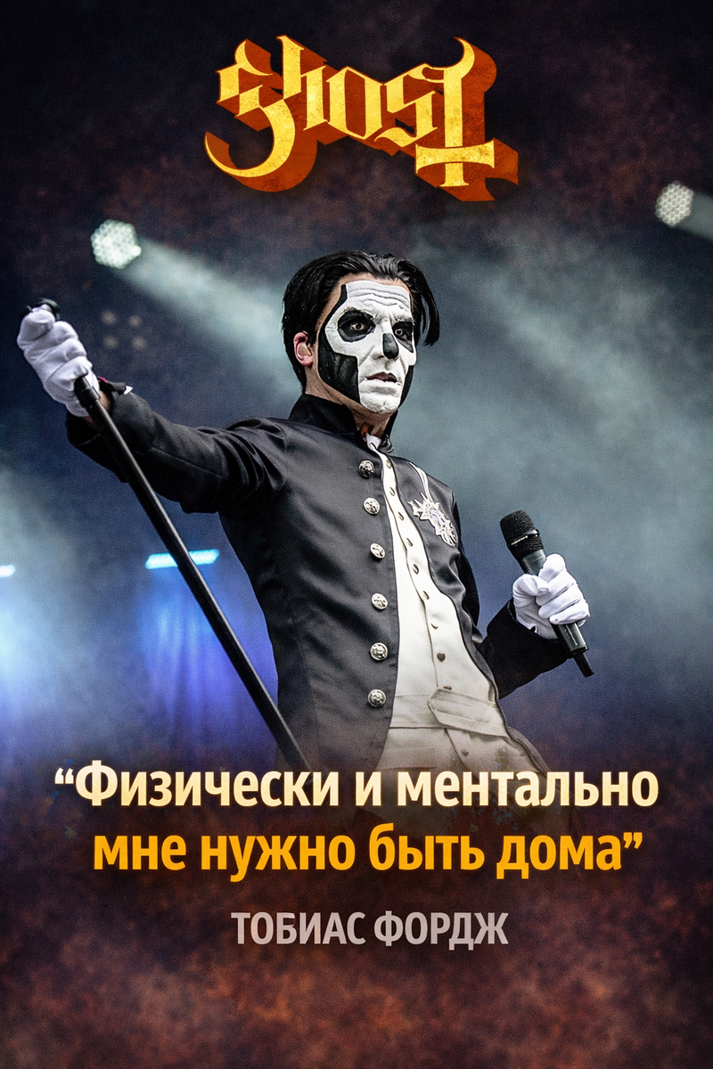 Иногда пауза — это не кризис, а честный разговор с собой. Tobias Forge в эфире Full Metal Jackie признался: после текущего Skeletour у GHOST ничего не запланировано. И это осознанный шаг. За 15 лет он жил в режиме «альбом — тур — студия — тур», почти без остановки. Теперь, по его словам, он физически и ментально чувствует потребность быть дома. Детям по 17 — время летит. Раньше он уезжал на 7–9 недель, уходил до рассвета, оставляя слёзы на балконе. Сейчас дети поддерживают его, и он сам готов начать новую главу. Forge сравнил себя с мастером, который и проектирует дом, и кладёт плитку, и сшивает всё вместе. Идеи есть, а «материалы закончились». Чтобы придумать новое — нужно отойти в сторону. Это не уход из творчества: у него в работе два фильма и ещё один альбом (не GHOST и не каверы). Просто фокус смещается. Про политику «без телефонов» на Skeletour он говорит жёстко: решение правильное. 50+ концертов с Yondr-пакетами показали, что живой контакт со зрителем стал сильнее. Он ценит сце