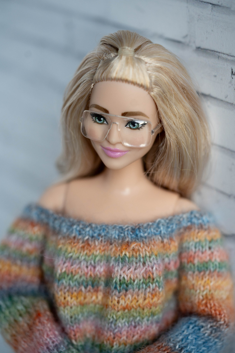 Меня не устраивает ее кукольная рисовка, большие глаза и пиксельная печать, но безумно нравятся ее волосы. Я хочу отправить ее на выселение, возможно в новом доме она будет более счастливой. Но вот сейчас она нашла очки, надела новое вязаное платье и решительно позирует мне и весьма неплохо с этим справляется.