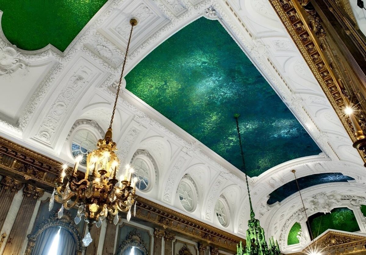 Тогда художник Ян Фабр предложил нестандартную идею — заменить камень панцирями тропических жуков, мерцающими изумрудными и синими переливами. Так родился проект «Heaven of Delight»: более миллиона крылышек заменили драгоценный минерал, превратив потолок в сияющее полотно, чью роскошь создала сама природа.