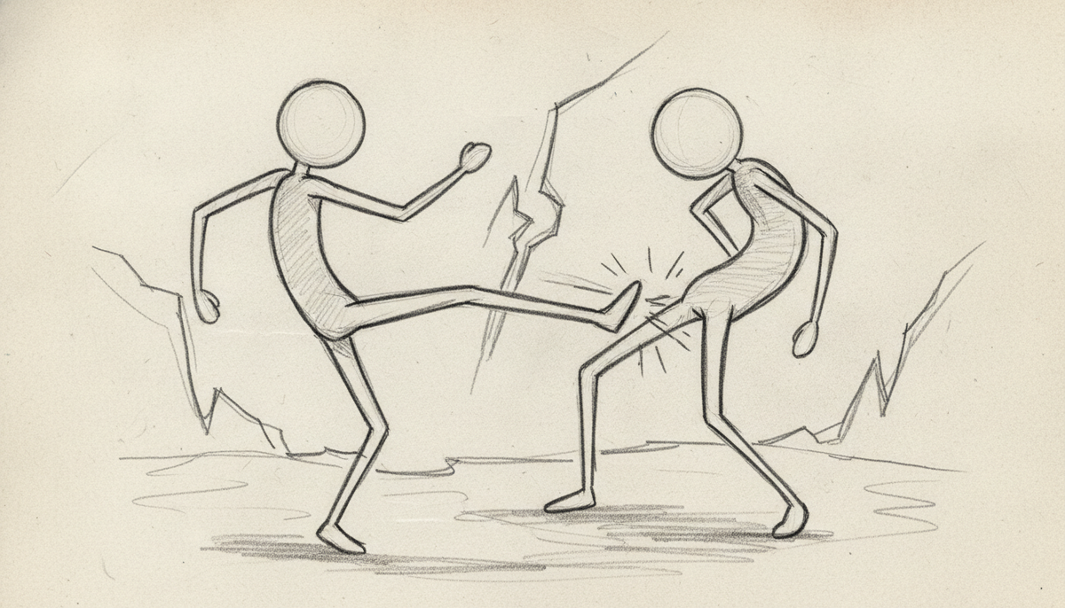 Пах — одна из трёх ключевых зон поражения, когда перед вами противник с превосходством в силе, весе или подготовке. Это не магическая кнопка выключения. Это уязвимость нервной системы.