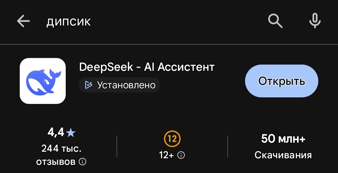 Для этого нам понадобится нейросеть, я использую дипсик, её можно скачать в плеймаркете: