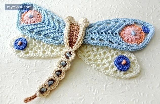 Две схемы вязания стрекозы крючком.