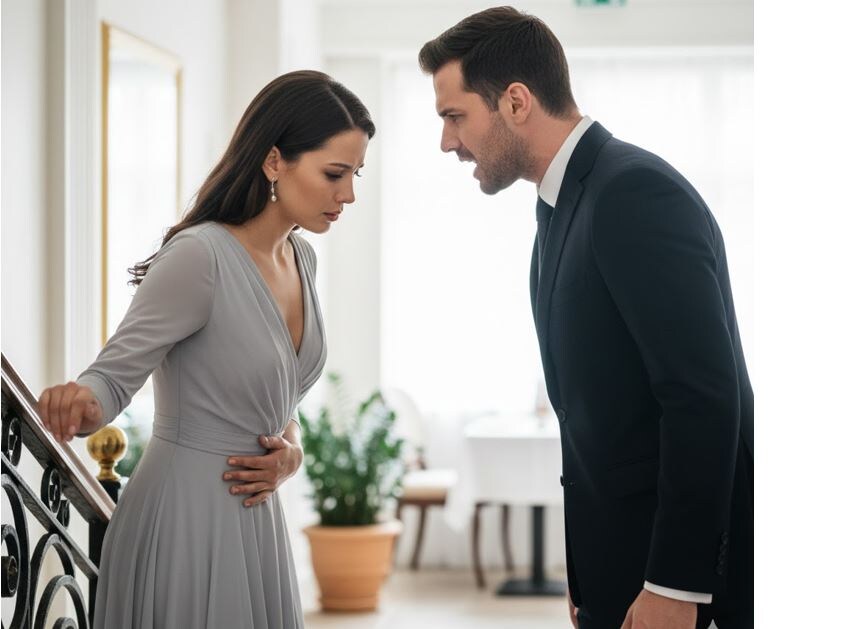 Поздний вечер у ресторана пах мокрым асфальтом и жареным мясом из вытяжки. Никита стоял на верхней ступеньке, в костюме, и кричал вниз, туда, где Марина едва держалась на ногах. Она схватилась за перила обеими руками, пальцы побелели, будто она держалась не за металл, а за жизнь. Её качнуло — сильно, некрасиво; она шагнула назад и снова вцепилась.