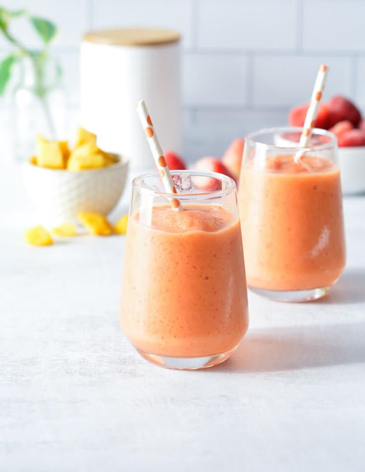Смузи — это густой напиток из ягод, фруктов или овощей. Все ингредиенты измельчаются в блендере до состояния пюре. Обычно туда добавляют жидкость: сок, молоко, йогурт или воду, чтобы было не слишком густо.