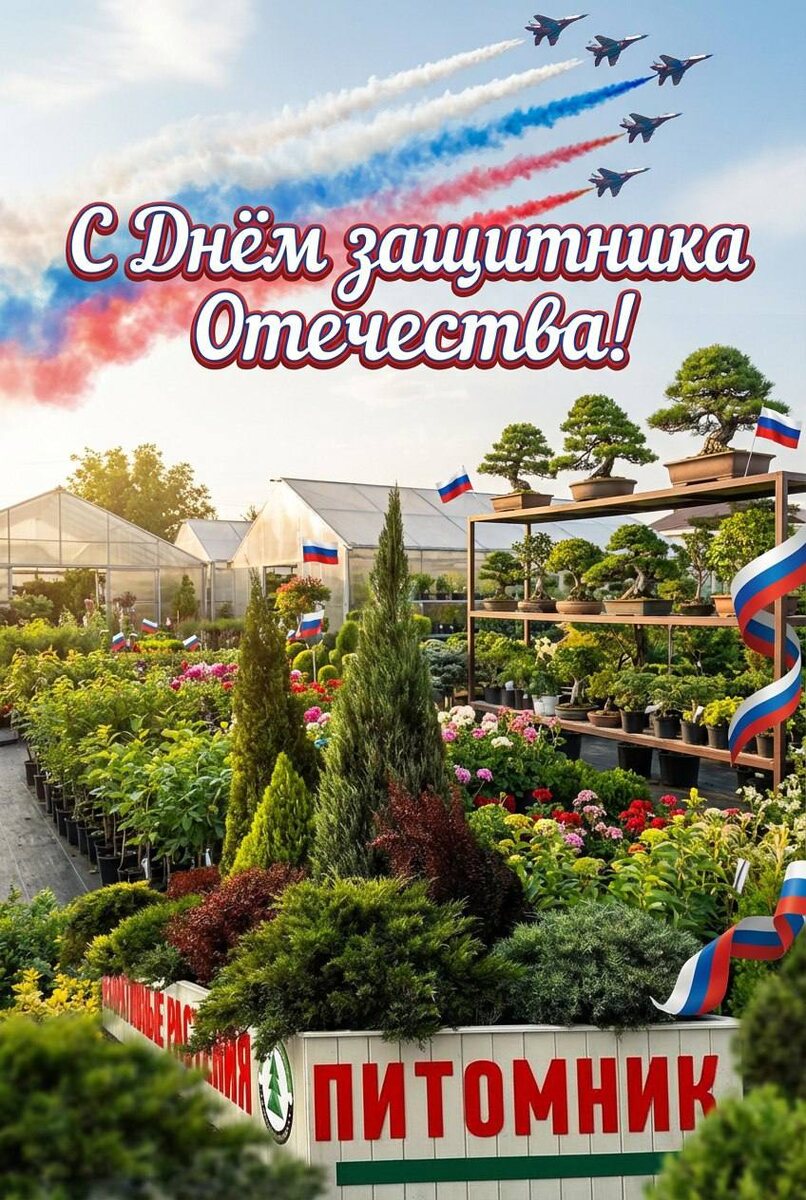 ! Пусть ваша сила и стойкость, как могучие корни дуба, питают великие дела, а жизнь расцветает яркими красками, словно сады весной. Желаем крепкого здоровья, семейного тепла и всегда зелёного пути впереди! С гордостью и уважением, команда питомника растений «Зелёный берег» 🌿