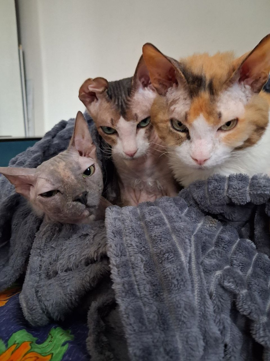 » Кожаная улетела в этот ваш Хабаровск, где, говорят, тигры ходят по улицам, а мороз кусает сильнее Трошиного голода. Первые три дня мы просто лежали в её футболках, вдыхая спасительный запах. А потом Троша, как заправский взломщик, открыл комод — его метод тыка сработал лучше любой отмычки. Мы выкидывали оттуда всё: носки летели, как парашюты десантников, футболки превратились в лежанки, а один злополучный лифчик Луша надела на голову, объявив себя «генералом тоски». К вечеру третьего дня комод напоминал поле битвы, а мы сидели в этом хаосе, обсуждая план побега в Хабаровск. Троша уже паковал в зубы поводок. Но тут — ключ в замке! Кожаная стояла на пороге с сумками, пахнущими тайгой и… икрой! Мы накинулись на неё, как на спасение: я — на плечи, Луша — в ноги, Троша — в сумку с продуктами. Теперь мы лежим под пледами все вместе, и пахнет не тоской, а красной икрой и мясом кижуча. Кожаная гладит нас и шепчет: «Дурачки вы мои лысые…». А мы мурчим в ответ: зато теперь тигры в Хабаровске