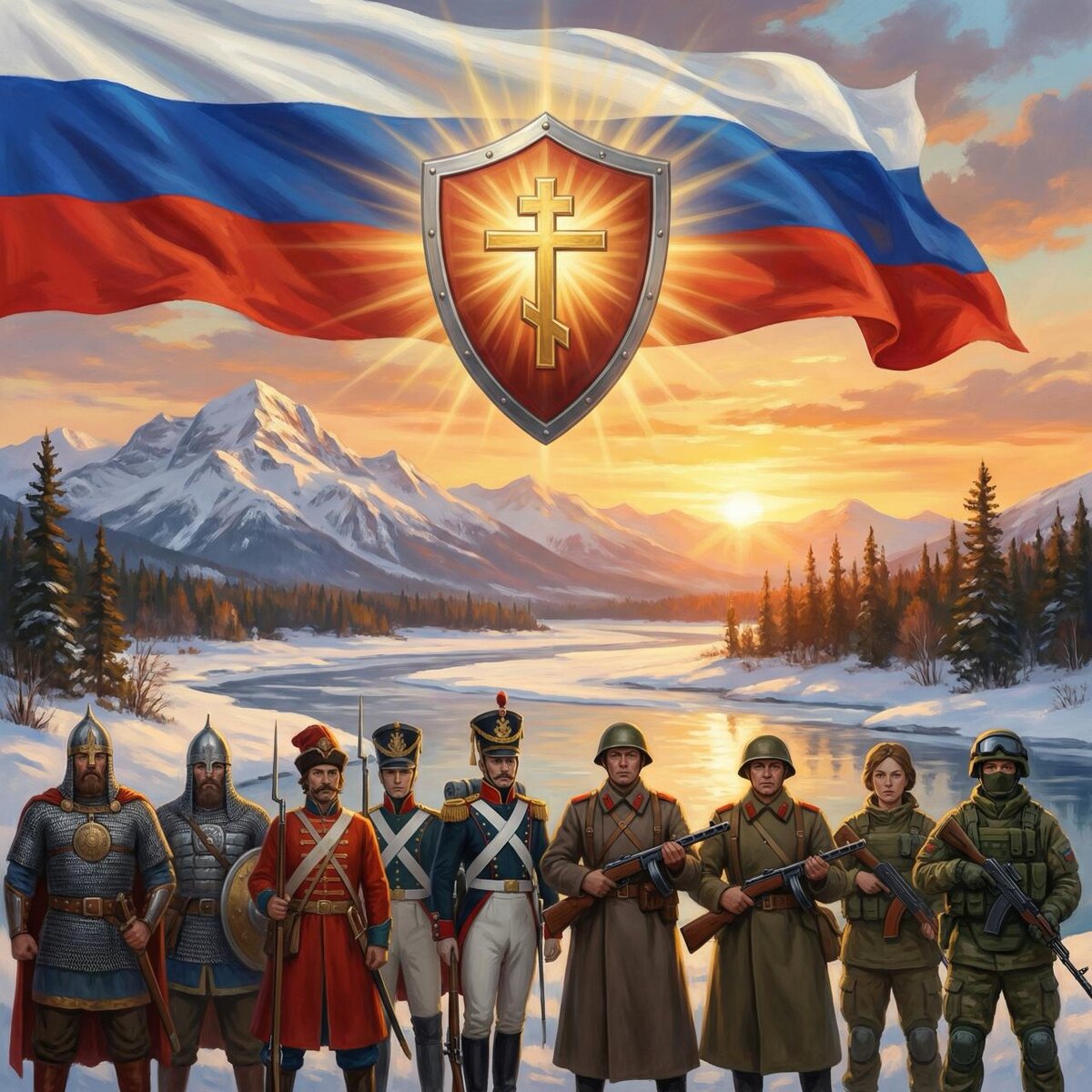! В этот славный день 23 февраля, когда мы отмечаем День защитника Отечества, давайте вспомним о неукротимом духе нашей Родины. На протяжении веков наши мужчины и женщины вставали на защиту родной земли от алчных захватчиков, превращая вызовы судьбы в триумф воли и чести. Россия — это не просто земля богатств и просторов, это вечная заноза в боку тех, кто жаждет подчинения, кость в горле для тиранов, соблазн для слабых духом. Но истинная сила нашей защиты кроется глубже — в духовной крепости, в выборе сердца, где здравый смысл сливается с священной необходимостью. Пусть ваш подвиг вдохновляет поколения, а мирное небо всегда охраняет наши дома! С праздником, герои! Будьте сильны, верны и непокорены. Слава России!