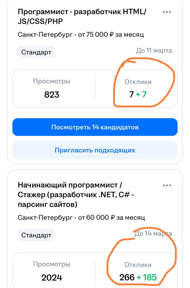 В первой просим тестовое сделать сразу для отклика, во второй - по итогу анализа резюме… Результаты на картинке. По второй вакансии уже есть 3-4 человека кто сделал тестовое и на неделе будут собеседования… Вывод? Ну люди предпочитают когда их лично просишь - ожидаемо. Мы все любим внимание :) Русский ИТ бизнес
