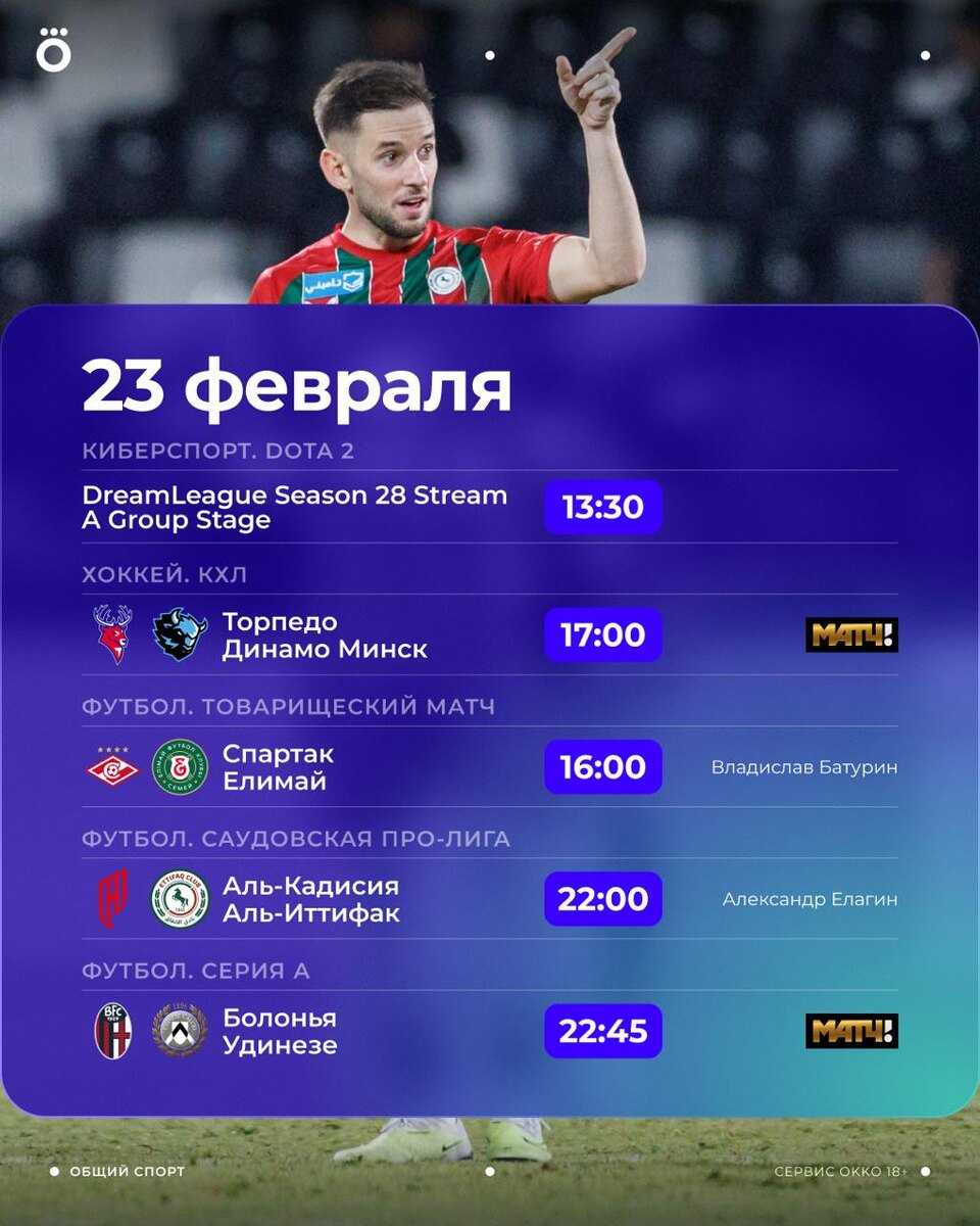Олимпиада закончилась, а спорт в Okko – нет. Лови расписание трансляций на сегодня 🍿