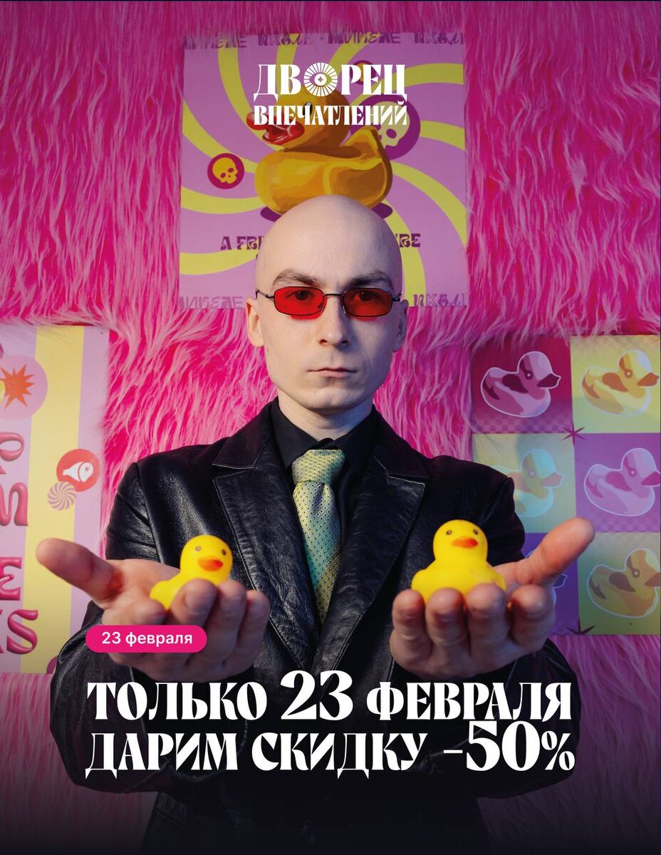 ! 🎖️ Сегодня особенный день, и мы хотим сделать его для вас еще ярче. Дворец Впечатлений дарит мужчинам скидку 50% на входной билет. Секретное слово — «ГЕРОЙ». Просто подойдите к кассе, назовите его и получите билет за полцены. Акция действует только сегодня, 23 февраля. Один билет для одного человека. Возрастных ограничений нет. Ждём в гости — погружаться в зеркальные миры, исследовать волшебный лес и чувствовать себя настоящим героем своего приключения. 📍 Казань, Баумана 31 🕙 С 10:00 до 21:00 #ДворецВпечатлений #Казань