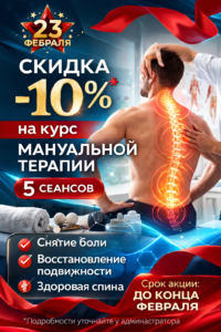 В рамках предложения предоставляется скидка 10% на курс мануальной терапии из 5 сеансов.