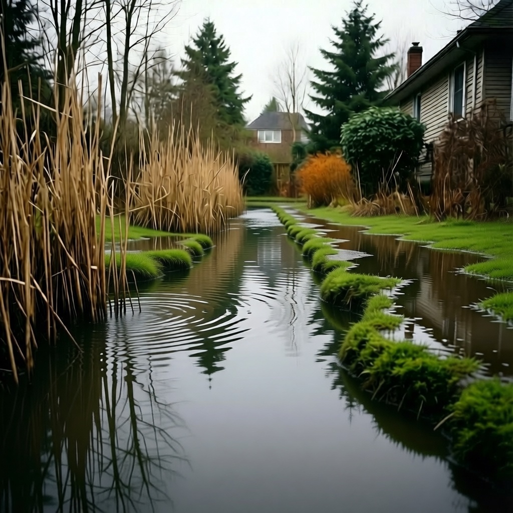 - В низинах сделайте дренажные пруды — они аккумулируют излишки воды.