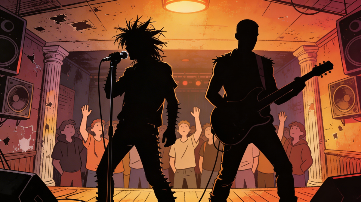 Привет, дзеновские рок-романтики. Поезд стучит колёсами, рутина дышит на ладан, и в какой-то момент ты включаешь сериал “Король и Шут” — не потому что “модно”, а потому что это как открыть старую дверь проклятого дома, за которой всё ещё пахнет репточкой и сырой штукатуркой. И тебя действительно телепортирует назад в прошлое: в подвалы, где ночные репетиции были не романтикой, а экономикой (ночью писать музыку было дешего и сердито);