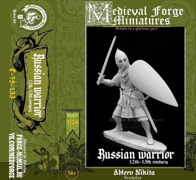 Тамбовская Medieval Forge Miniatures выпустила фигуру русского латника 12-13 века в масштабе 1/24 из полиуретановой смолы.