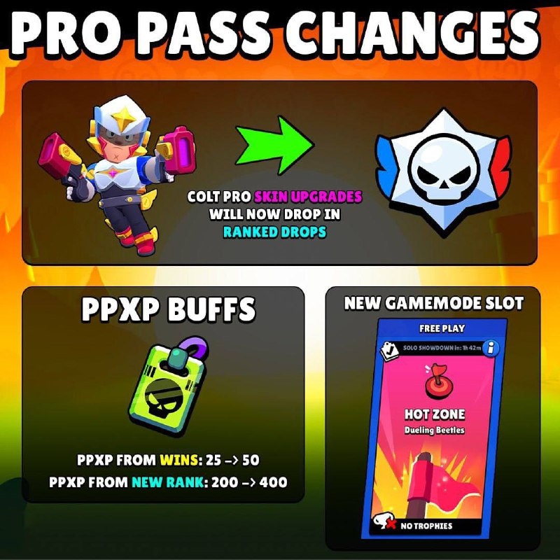 Разработчики внесли некоторые изменения в ранговый бой, которые появятся в следующем обновлении: — Улучшения для скинов Pro Pass теперь могут выпадать из Ранговых дропов; — Очки Pro Pass за победу в матче рангового боя: 25 → 50; — Очки Pro Pass за достижение нового ранга: 200 → 400; — Также был добавлен отдельный слот под режим, в котором не будут снимать и давать кубки. ✅Новости по Clash Royale - ТЫК 💬Новости по Roblox - ТЫК Мир Supercell. Подписаться