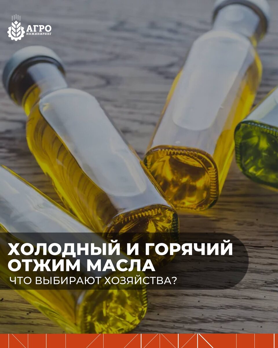 🌻 При запуске переработки масличных культур один из первых вопросов — какую технологию отжима выбрать: холодную или горячую? 🔁 Разница — не только в температуре. Это выбор модели бизнеса, уровня инвестиций и экономики проекта. 1️⃣ Холодный отжим Температура прессования — без дополнительного подогрева или с минимальным нагревом. Что получают: ✔ натуральное масло с сохранённым ароматом ✔ более «маркетинговый» продукт ✔ возможность работать в нише премиального сегмента Но есть нюансы: — ниже выход масла — выше остаточная масличность жмыха — чувствительность к качеству сырья Холодный отжим чаще выбирают хозяйства, ориентированные на: • розничные продажи • фермерские бренды • небольшие объёмы • добавленную стоимость, а не максимальный тоннаж 2️⃣ Горячий отжим Перед прессованием сырьё проходит термическую обработку (обжарку). Результат: ✔ выше выход масла ✔ ниже остаточная масличность жмыха ✔ стабильная производительность Такая схема лучше работает при: • средних и крупных объёмах
