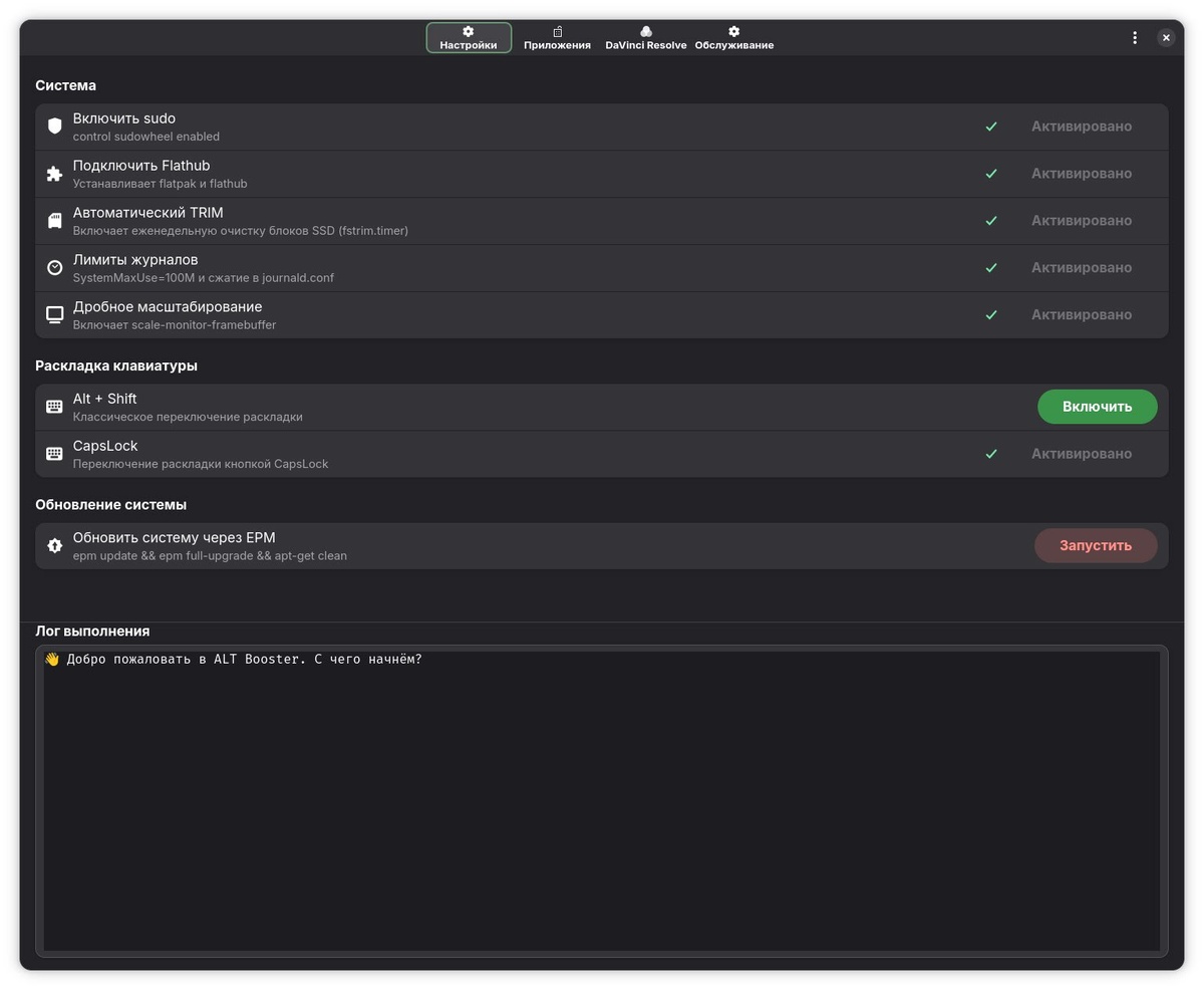 ~ Представляю вашему вниманию свою первую утилиту на GTK4 - ALT Booster