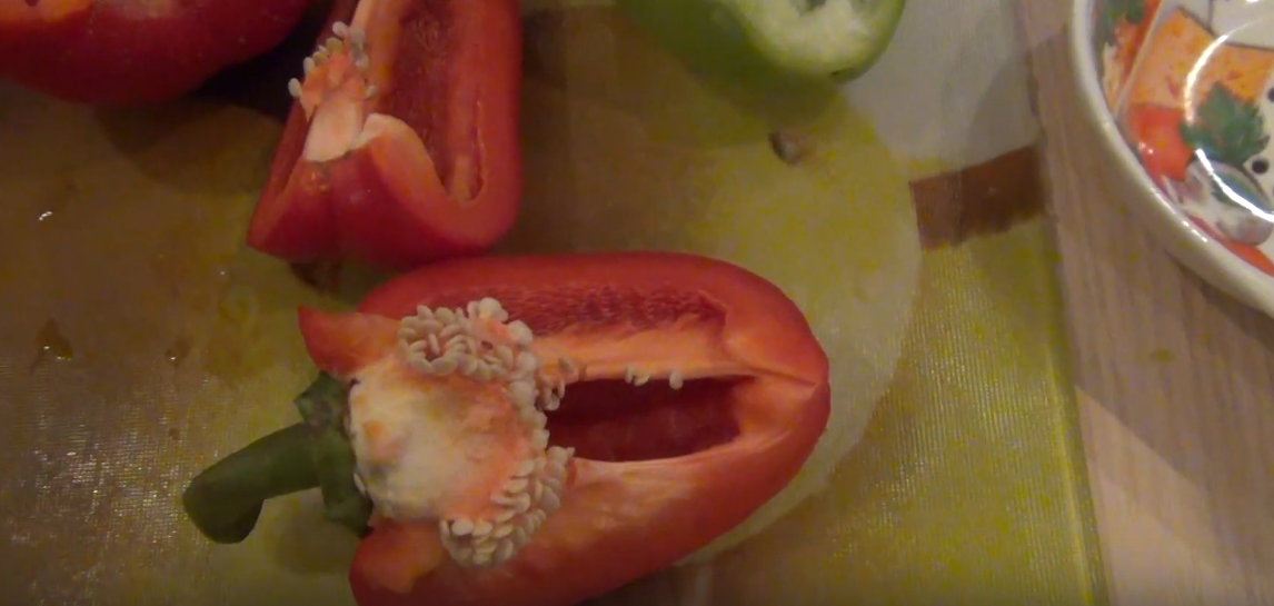 - Извлечение. Аккуратно разрежьте перец, выньте семенную коробку. Не тяните семена за хвостики, чтобы не повредить зародыш.