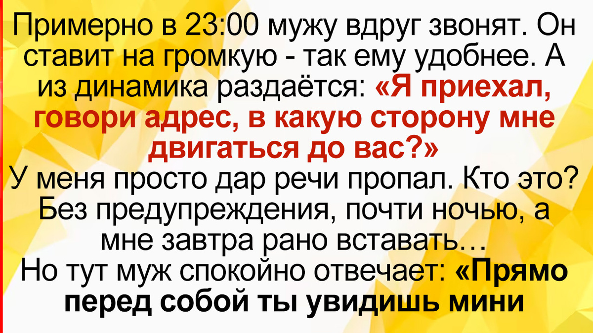 Ох, вчера случилась история, до сих пор под впечатлением! Примерно в 23:00 мужу вдруг звонят. Он ставит на громкую — так ему удобнее, он в этот момент чем‑то занят. А из динамика раздаётся: «Я вышел из метро „Братиславская“ — в какую сторону мне двигаться до вас?» У меня просто дар речи пропал. Кто это? Без предупреждения, почти ночью, а мне завтра рано вставать… Мысли в голове крутились вихрем. Но тут муж спокойно отвечает: «Прямо перед собой ты увидишь мини‑гостиницу, типа хостела. Слышал, что там более‑менее прилично и цены приемлемые». На том конце провода последовало несколько крепких выражений — и звонок оборвался. Я в полном шоке поворачиваюсь к мужу: «Что это было?!» Оказалось, они познакомились в Сочи — отдыхали рядом, вместе ели, обсуждали жизнь и политику, даже куда‑то съездили. Муж отметил, что новый знакомый порой вёл себя нагловато и жадновато, но не придал этому большого значения. Как‑то само собой обменялись номерами — тот предложил, муж и не подумал отказываться. Ещё и