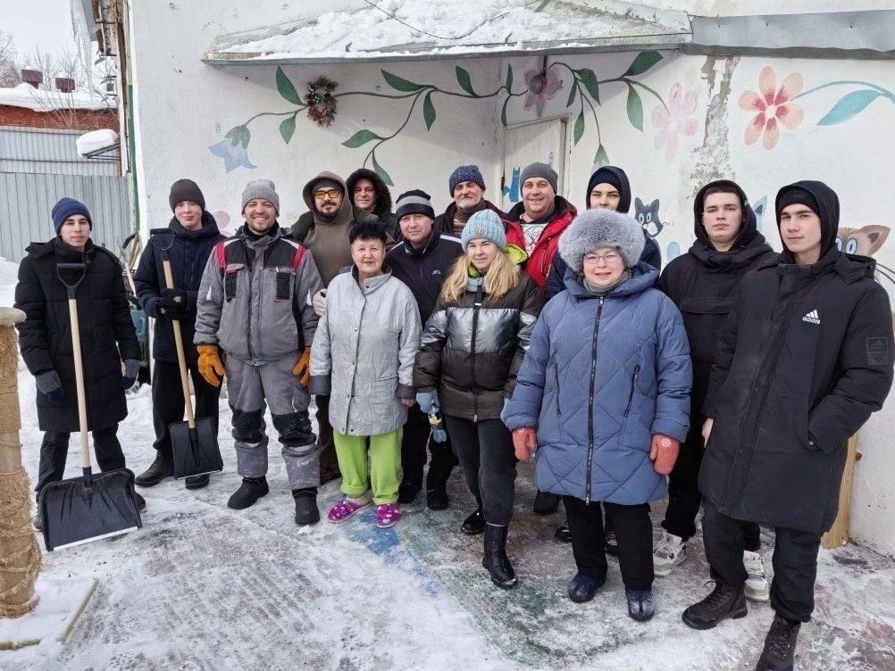 Студенты Северского промышленного колледжа вместе с волонтерами ровно за час очистили крышу ОБЗО «Котодом» от снега