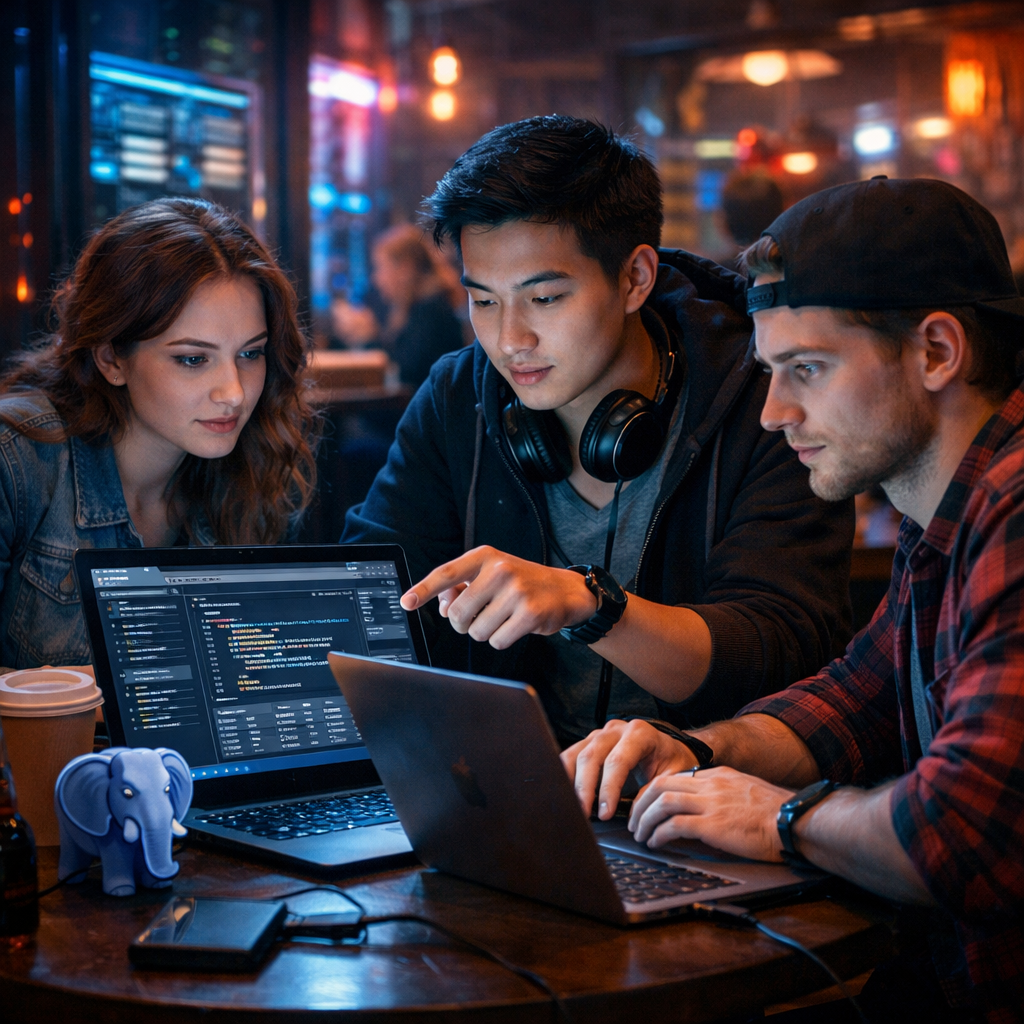 *04:23. Монитор мигает синим, за окном дрон-курьер ругается с беспилотной шаурмечной, а у меня курсовая по базам данных горит синим пламенем. Препод сказал: «Данные в таблице — как нейросети в головах у студентов. Если перепутал местами — переучивай, пока не починишь». Короче, надо поменять местами имена и фамилии в таблице. Погнали.*