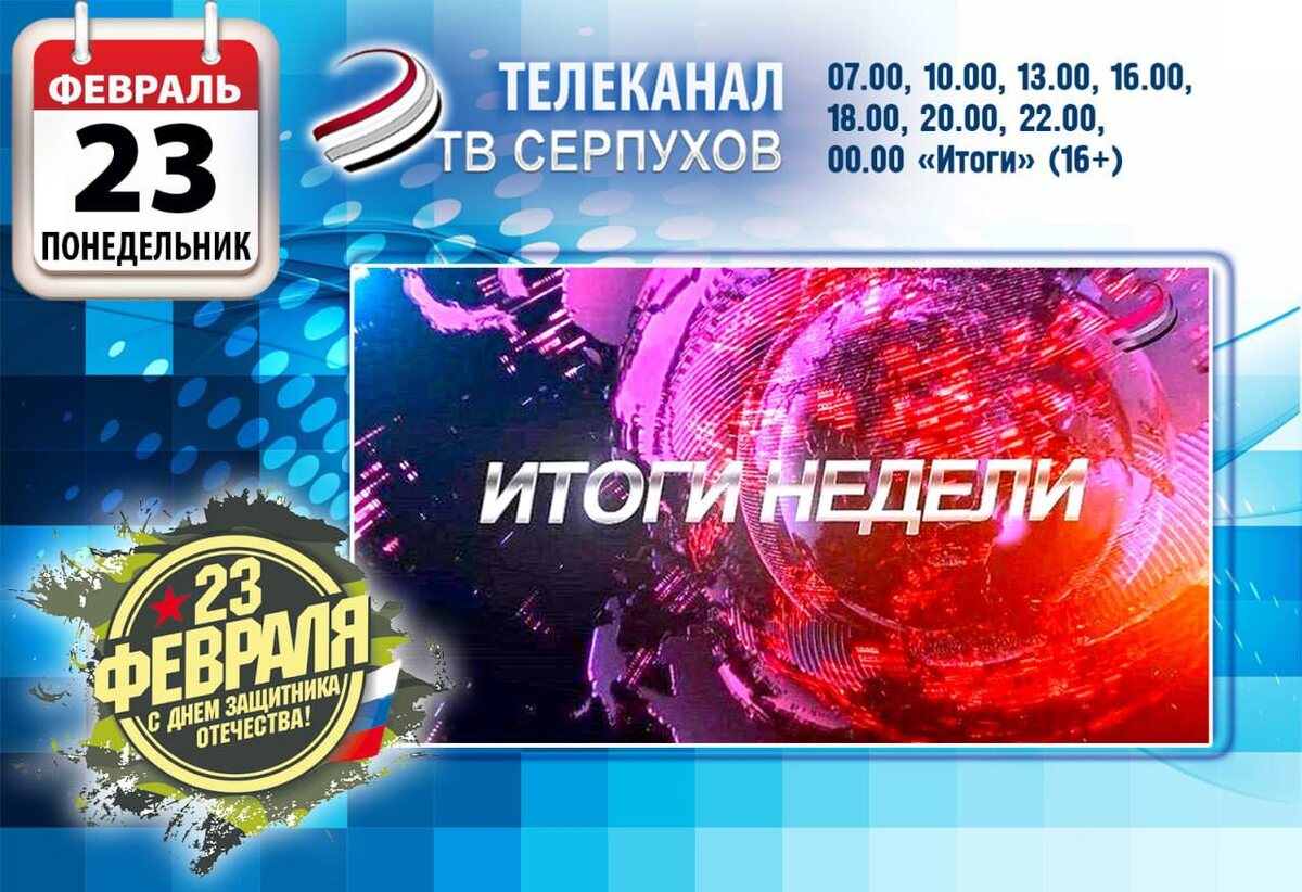 ⬇️ 07.00, 10.00, 13.00, 16.00, 18.00, 20.00, 22.00, 00.00 «Итоги» (16+) 06.35, 08.50 м/ф «Мультфильмы» (6+) 07.30, 17.40, 05.45 д/ф «Первооткрыватели. 300 лет РАН» (12+) 07.55, 21.30, 22.30 д/ф «Святыни России» (12+) 09.05, 10.30, 19.25, 20.30 т/с «Позывной «Стая» (16+) 11.10, 13.30, 23.40, 00.25 т/с «Второе зрение» (12+) 15.00, 16.30 концерт «Время выбрало нас. Концерт ко Дню защитника Отечества» (12+) 18.30, 22.55 д/ф «Бастионы России» (12+) 03.30 т/с «Всё началось в Харбине» (18+) 📹 ОТВ-Серпухов в МАХ