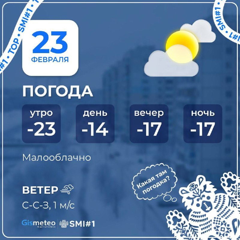 Челябинцев ждут погодные качели. Утром было -23°. Днем температура составит -14 градусов. Вечером похолодает до -17°. Ветер слабый — 1 м/с. 📲 Читайте нас в MAX 👍 Подписаться на канал | Прислать новость