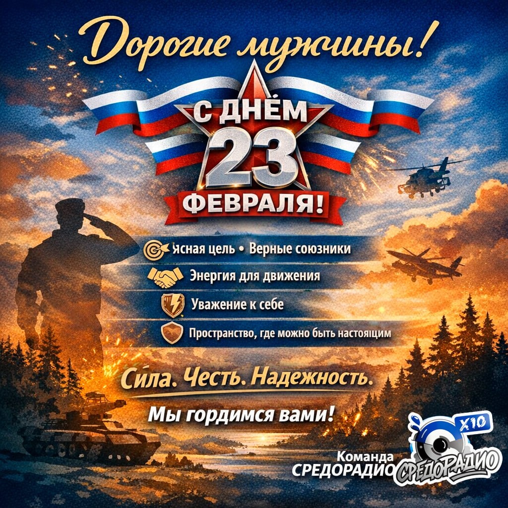🎙 Дорогие мужчины! Команда СРЕДОРАДИО поздравляет вас с 23 февраля