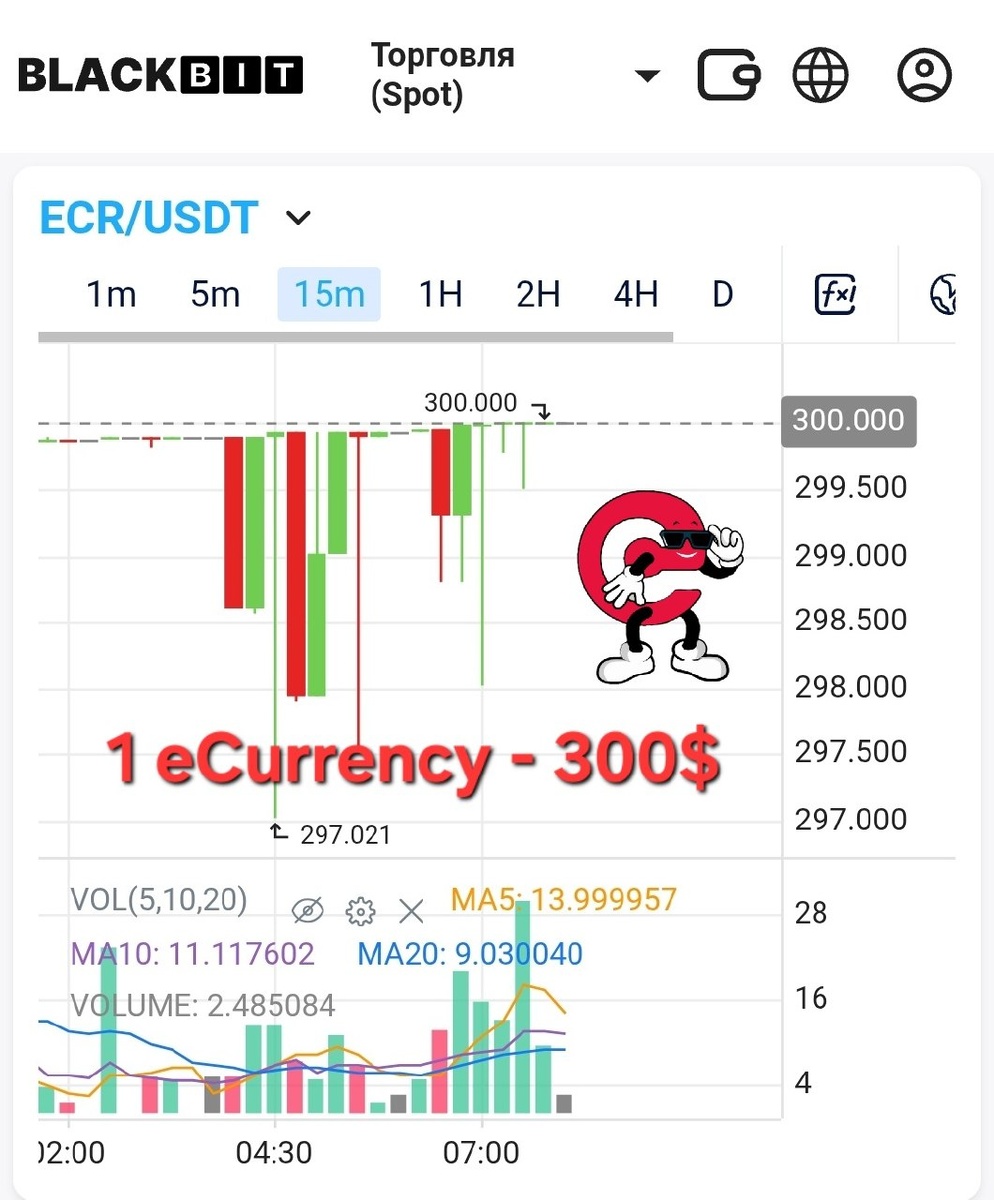 🤑Цена одной eCurrency впервые перешла отметку 300 долларов.