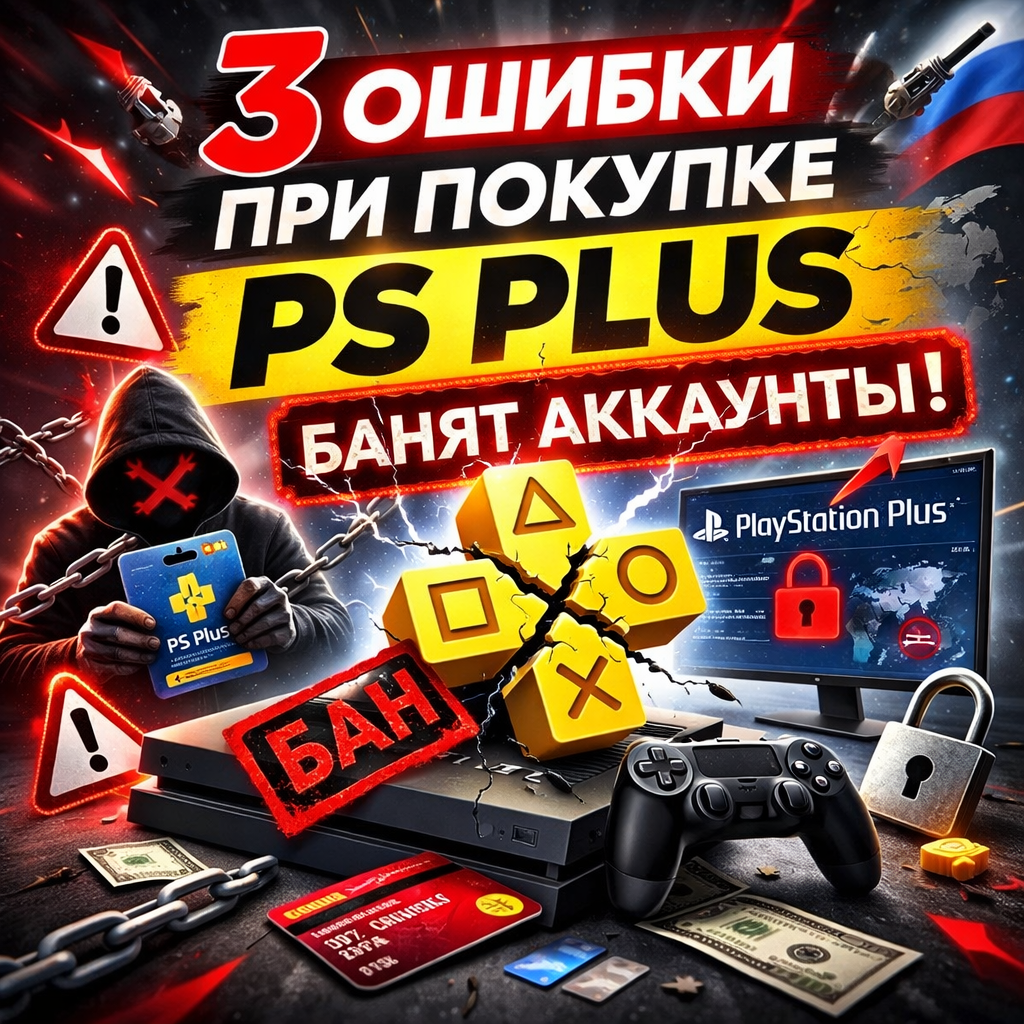 С каждым годом оформить PS Plus из России становится сложнее. Карты не проходят, регионы путают, а в сети появляется всё больше «выгодных» предложений. В итоге многие игроки экономят пару тысяч рублей — и теряют аккаунт с играми на десятки тысяч. Я собрал 3 самые частые ошибки при покупке PS Plus, которые в 2026 году чаще всего приводят к блокировкам и проблемам с доступом. --- ❌ Ошибка №1. Покупка шеринга вместо личной подписки Один из самых популярных способов «сэкономить» — купить шеринг. Вам дают аккаунт с активной подпиской, и вы просто играете. На практике: - доступ могут отозвать в любой момент - владелец может сменить пароль - аккаунт может быть продан ещё 10 людям - Sony может ограничить доступ 👉 В итоге подписка исчезает, а деньги вернуть невозможно. Главное: шеринг — это всегда временное решение без гарантий. --- ❌ Ошибка №2. Использование подозрительно дешёвых аккаунтов На маркетплейсах и в чатах часто продают: - «готовые аккаунты с PS Plus» - акка